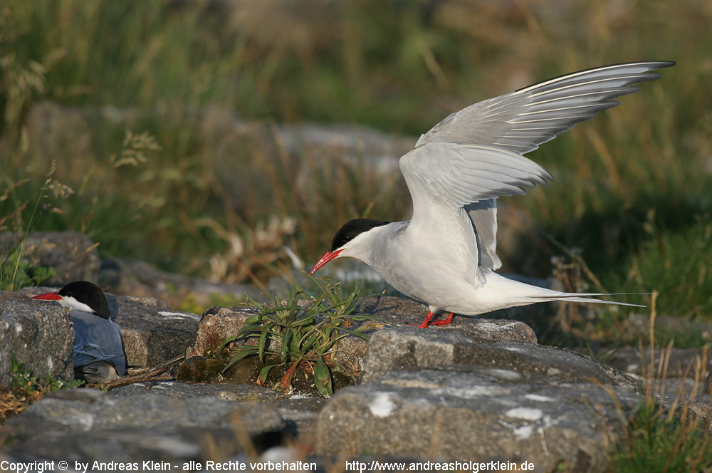 Neststandort : Küstenseeschwalben sind Koloniebrüter, die ihre Nester in flachen Mulden am Boden anlegen, meist in Sand, Kies oder dichter Vegetation.